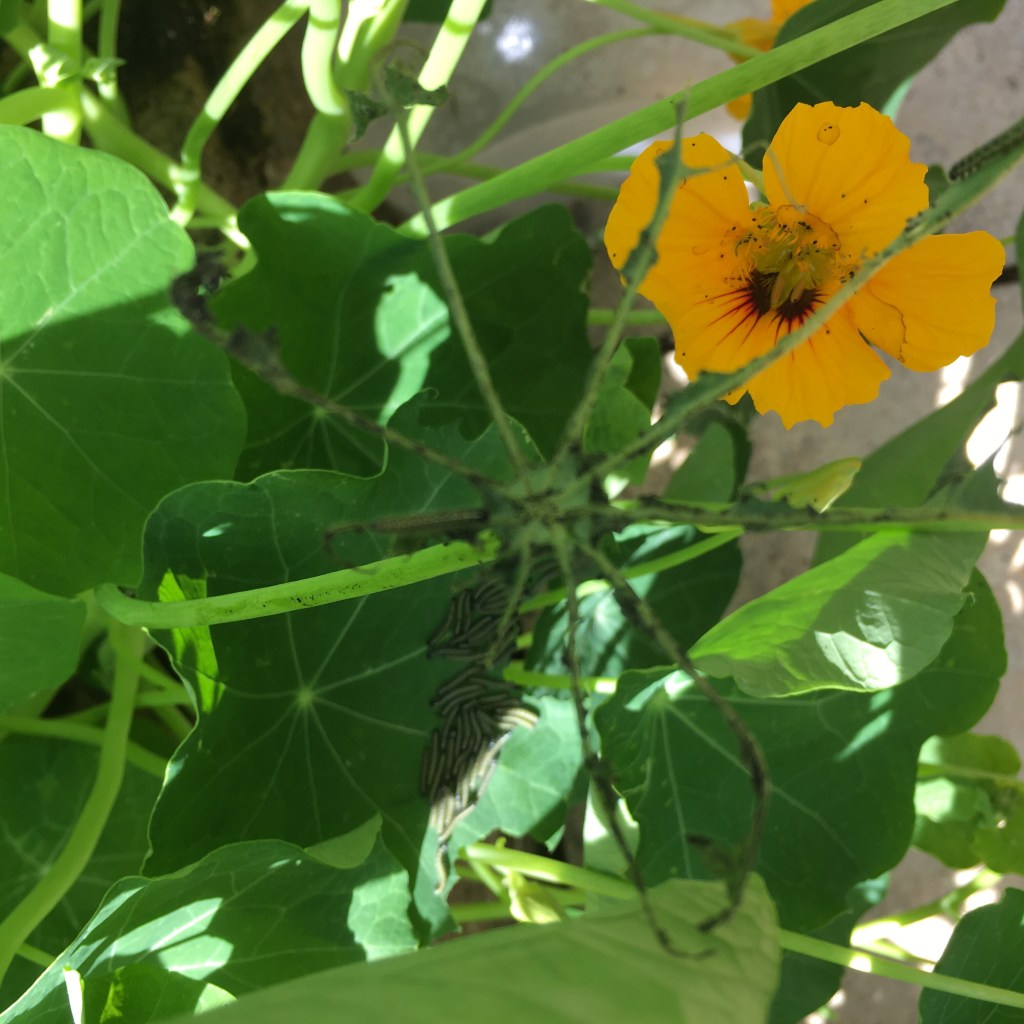 June 13, 2020 Caterpillars The clutch of caterpillars have eaten through their first leaf and have now formed two groups on two new leaves Share this: Click to share on X (Opens in new window) X Click to share on Facebook (Opens in new window) Facebook Click to share on Pinterest (Opens in new window) Pinterest Click to email a link to a friend (Opens in new window) Email Click to print (Opens in new window) Print Like Loading... Related