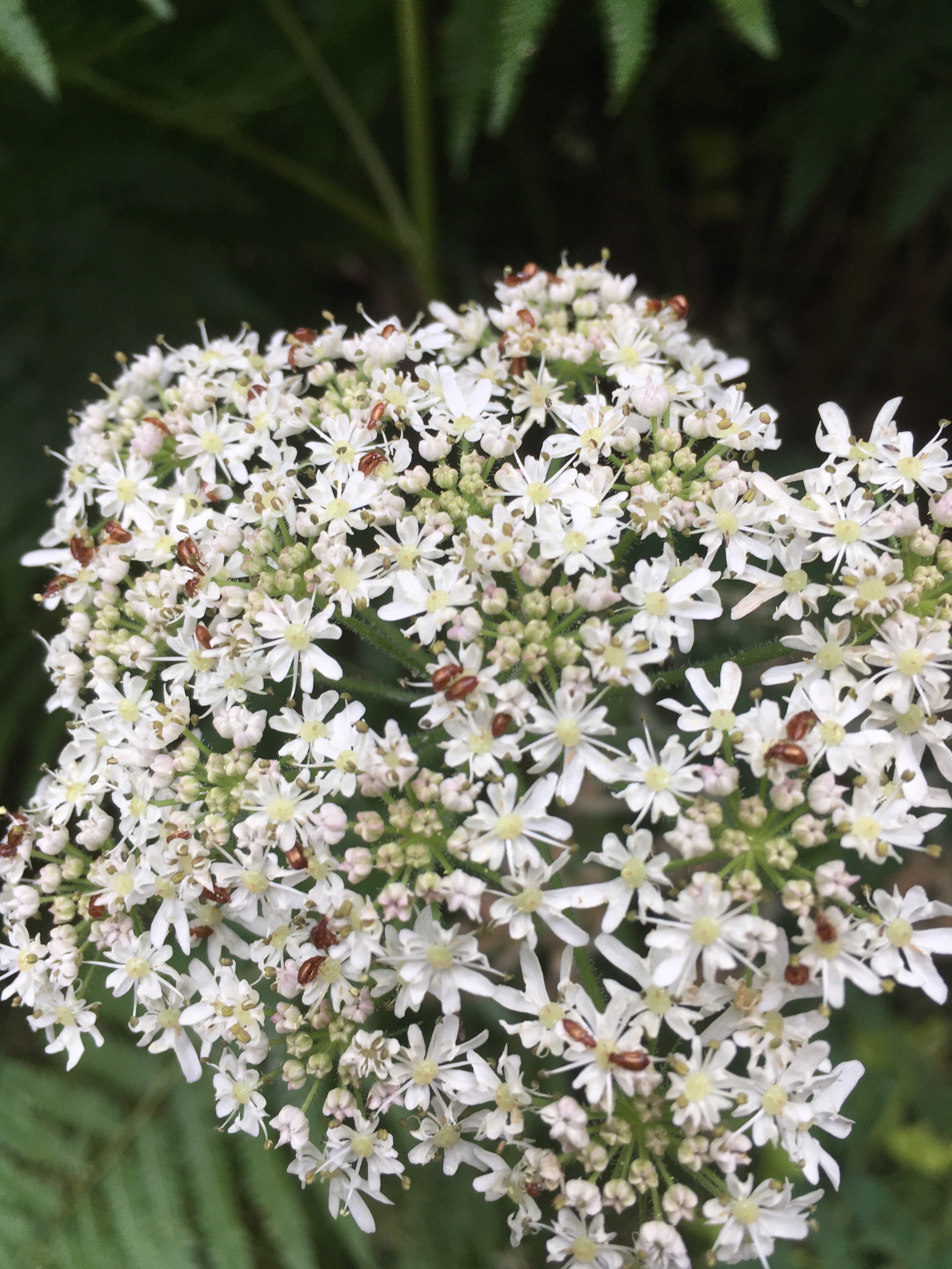I was admiring the delicate flowers of the cow parsley fringing the paths today, before realising they were hosting a bit of an insect orgy.